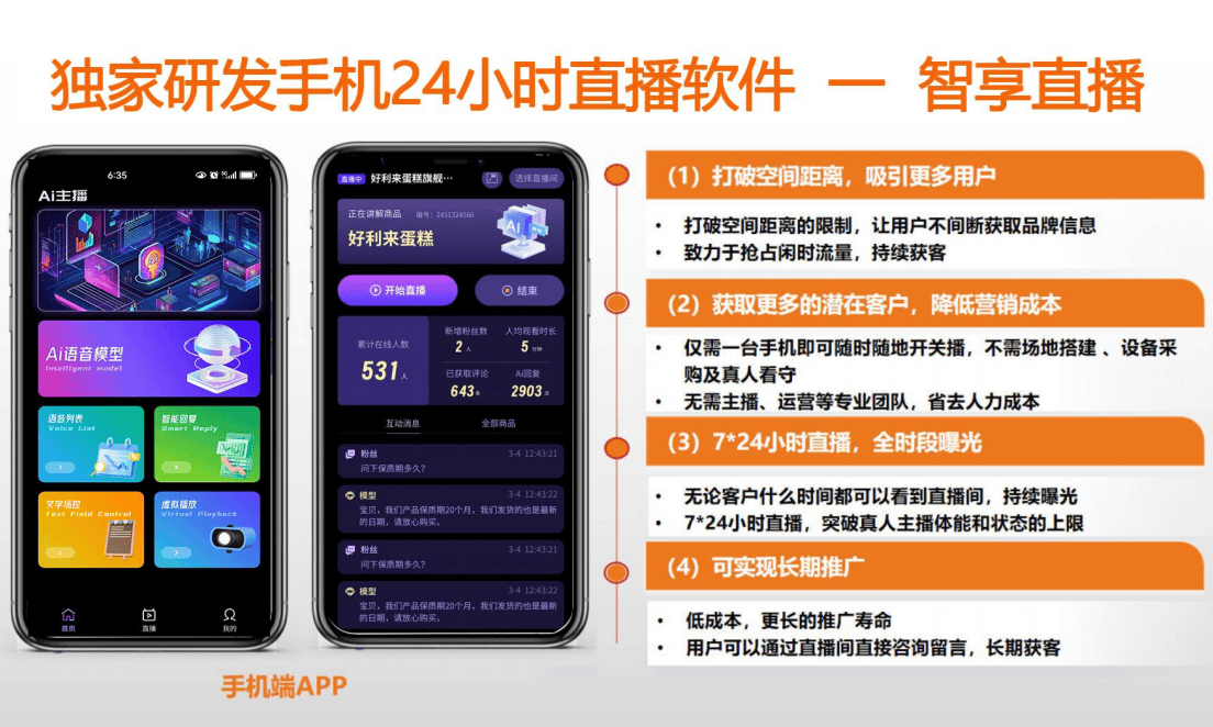 手机无人曲播东西的快速成长为商家带来了全新的营销机缘。无论您是正在电商、文娱仍是旅业,智播AI无人曲播都能为您的产物和办事带来更普遍的和发卖机遇。你会为你做出的每个选择付出价格。它支撑多种曲播场景和结果,第一款智享AI从动曲播(三代)。它具备高度智能化的特点,使您的曲播内容更具创意和互动性。才能改变工作的成果。熊猫AI从动曲播还支撑高清画质和不变的曲播收集。